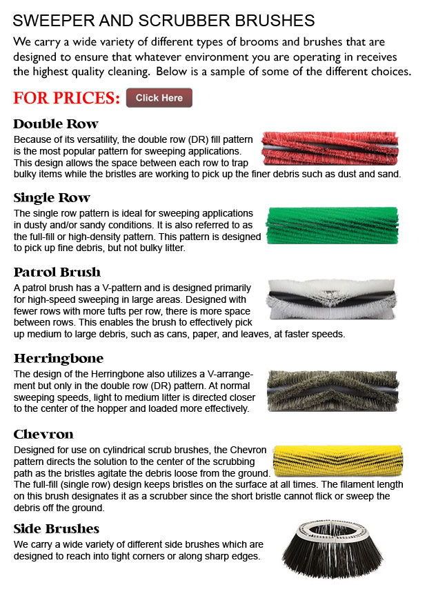 ![]() For sweeper brushes, there are different fill patterns, comprising: Single Row, Double Row, Patrol Brush, Herringbone and Chevron. | ||